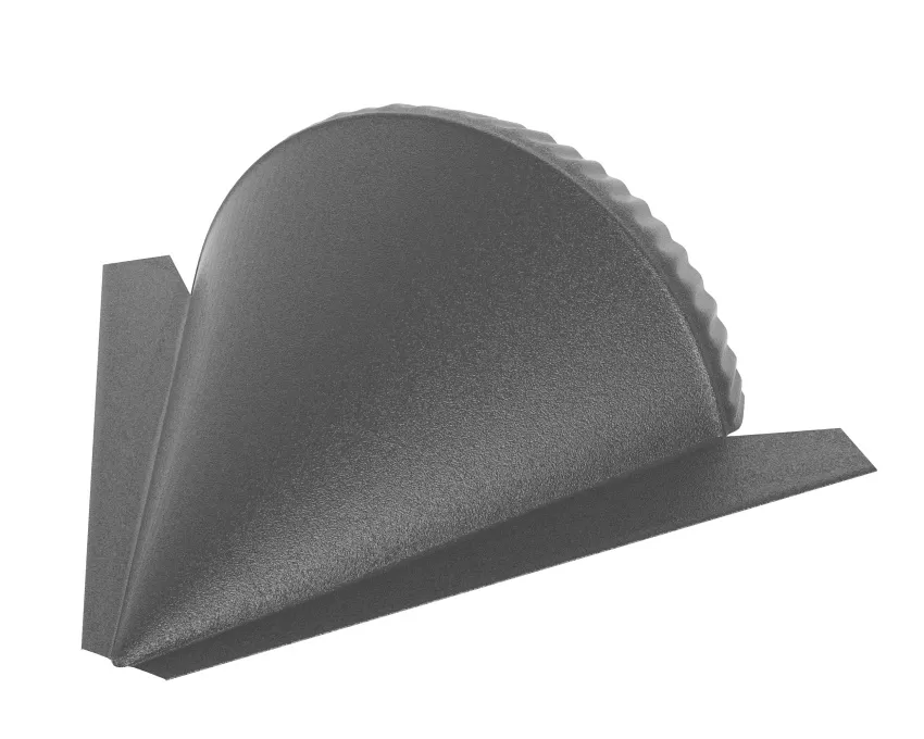 Конусная заглушка конька полукруглого. Устанавливается на окончании хребтов при монтаже полукруглого конька. Придает кровле завершенный эстетичный вид.