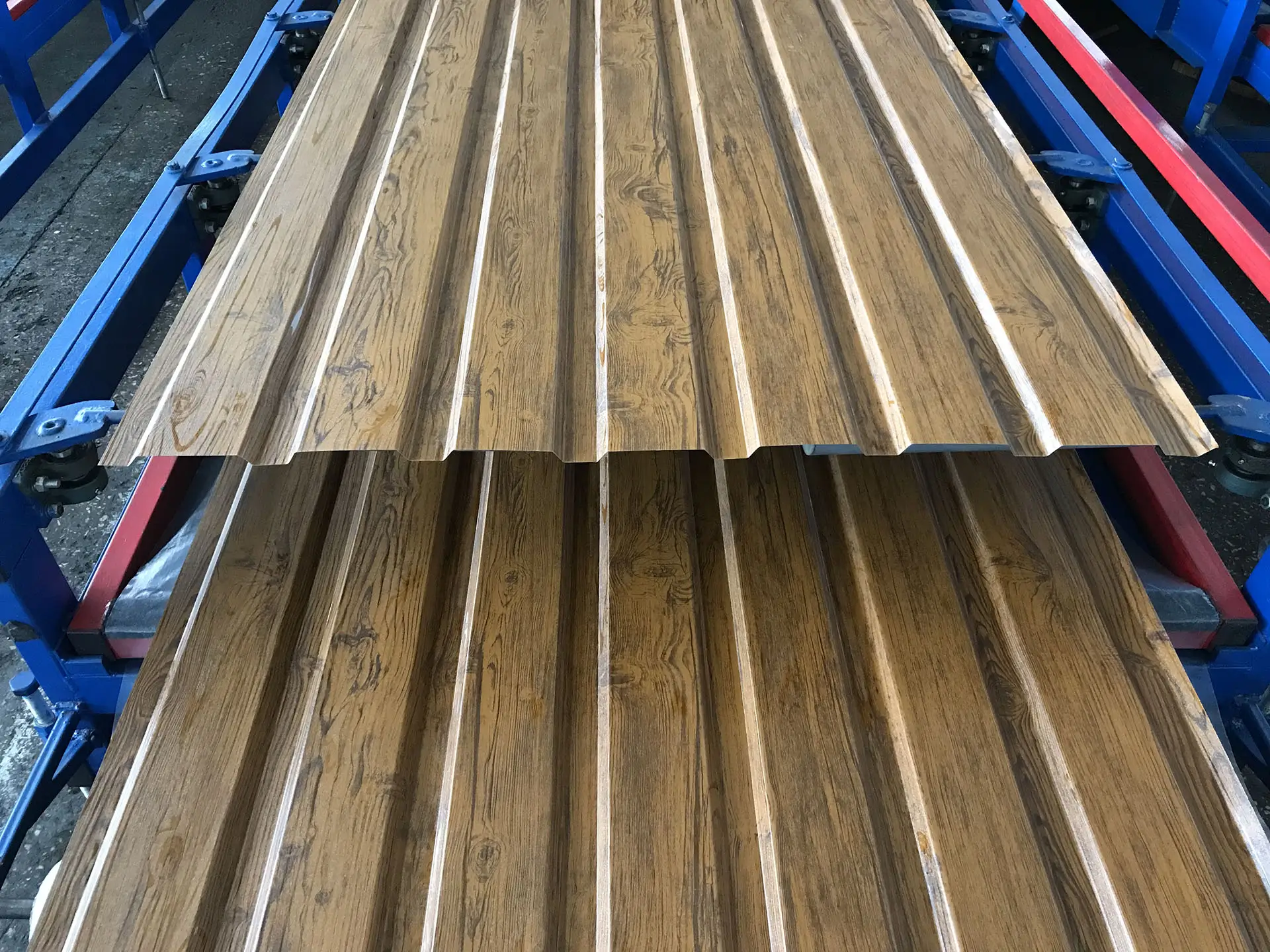Профнастил – это крупные листы разной толщины, выпускаемые производителем из гнутого железа без нагрева на станках – холодным способом. На поверхности каждого листа имеются рёбра жёсткости – волны. Получаются они после проката на оборудовании, их высота и форма зависят от назначения и типа стройматериала.