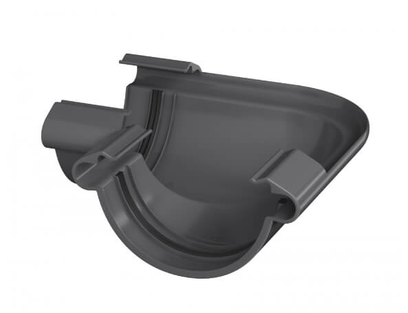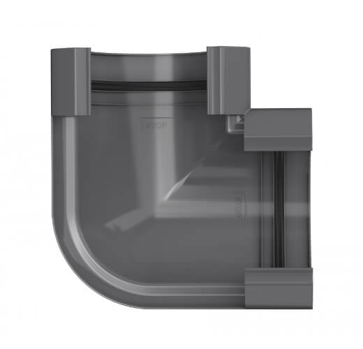 Угол желоба ТЕХНОНИКОЛЬ ПВХ МАКСИ графитово-серый – связующий элемент в водостоке. Используется, чтобы соединить желоба и корректировать направление потока воды.